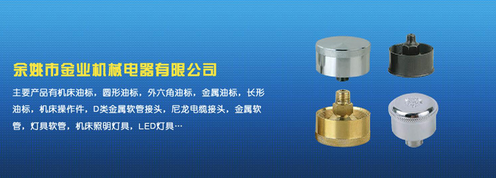 余姚市金業機械電器有限公司主要產品有機床油杯,圓形油標,外六角油標,金屬油標,長形油標,機床操作件,D類金屬軟管接頭,尼龍電纜接頭,金屬軟管,燈具軟管,機床照明燈具,LED燈具,DGT型線路軟管防護套,TL型鋼制電纜手軌,電纜尼龍拖鏈,可調塑鋼冷卻管等產品,規格齊全,全部自制。望國內外客戶前來考察:共同發展…